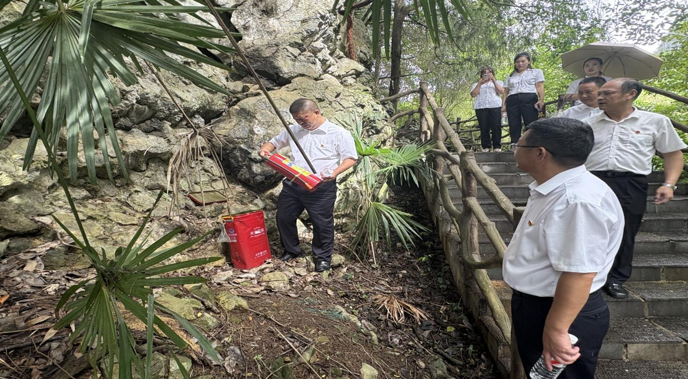 9月24日,李泽忠率党员先行动,在云港口码头、游客中心及红花峰林游步道排查:清理消防柜杂物、核验消防器材,检查游步道安全,要求露营基地工人规范戴安全帽,4项问题限期2天整改。同步检查“飞拉达”钢索牢固度与安全锁具性能,杜绝高空风险。