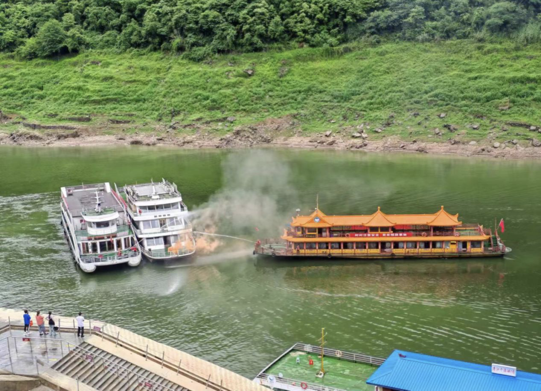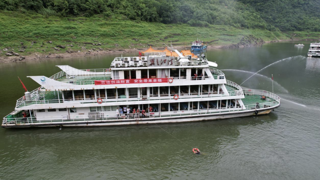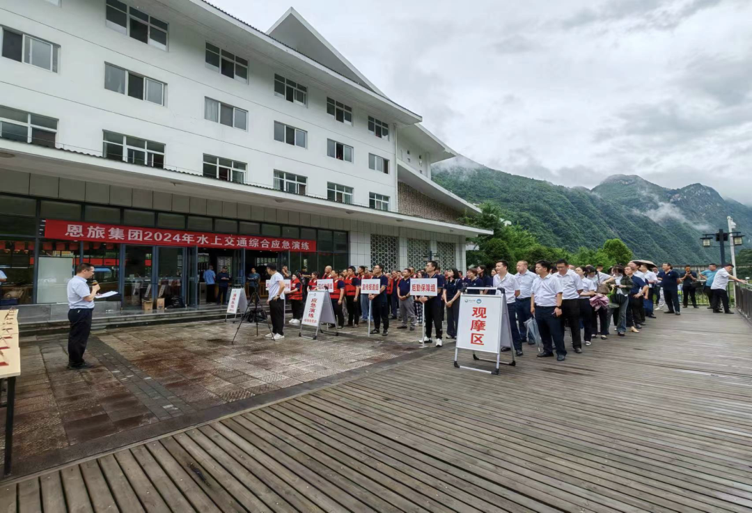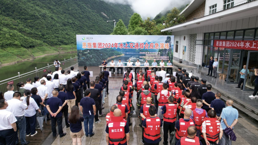 第23个全国“安全生产月”来临之际,为牢固树立安全发展理念,努力践行“人人讲安全 个个会应急--畅通生命通道”的活动主题,提升清江公司水上交通运输突发事件应急处置能力。6月21日下午,恩旅集团联合恩施州交通运输局在恩施大清江景区开展2024年水上交通综合应急演练。本次演练包含应急指挥、船舶火灾自救、反恐防暴处置、游客疏散转移及落水救生、船舶增援灭火施救、船岸联合救援等多个科目,共80余人、4艘船艇参与。