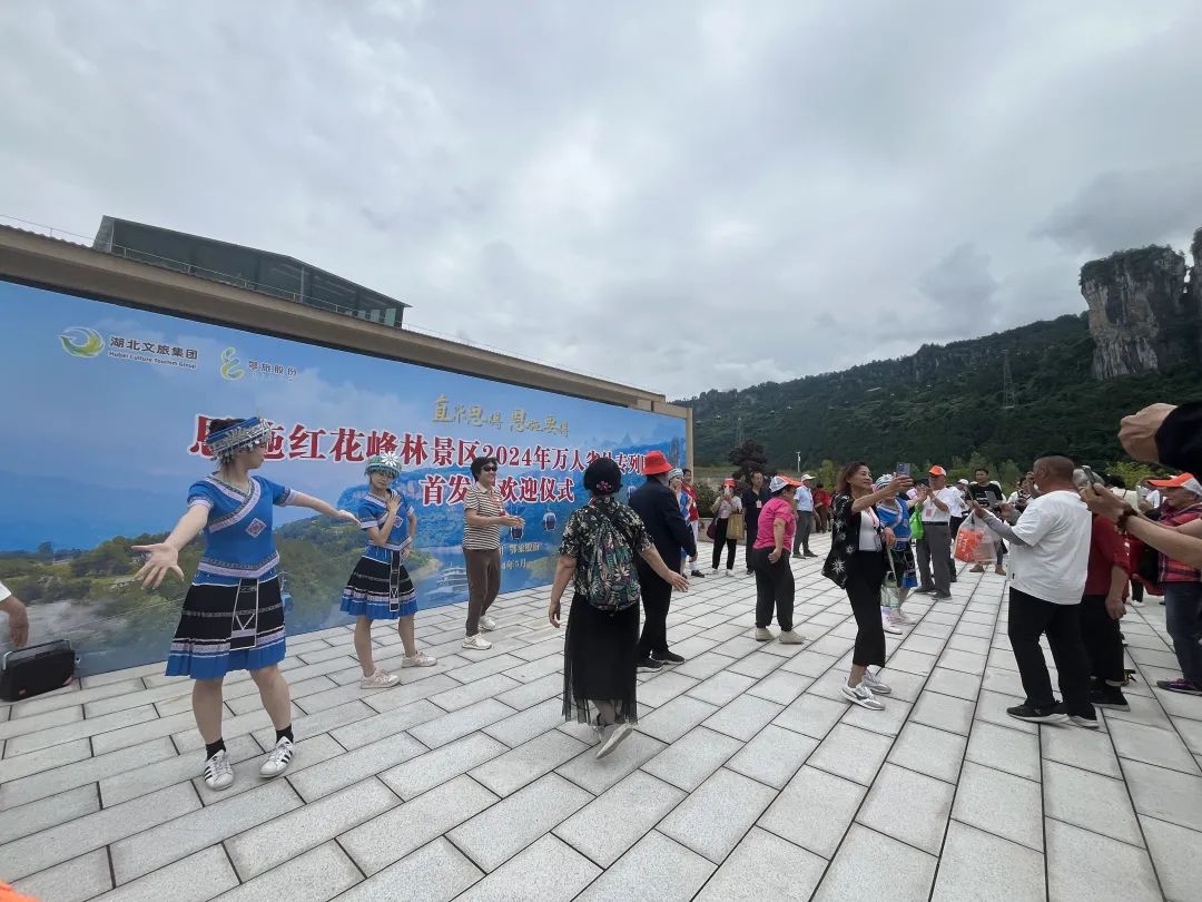 6月27日,恩施红花峰林景区迎来了第二批万人专列团,这是继今年5月首发专列团后景区营销持续发力的成果。为扩大社会影响,红花峰林景区为首发专列团精心准备了土家拦门酒欢迎仪式和精彩的节目表演,受到游客们高度赞扬。 抵达游客中心 游船上合影留恋 土家特色拦门酒 候船中心合影留恋 土家幺妹跳摆手舞欢迎大家 红花峰林景区,是一个集休闲度假、科普研究与探险观光等多种功能于一体的美妙综合型生态旅游区。在这里,奇峰突兀,危崖层叠,那壮丽的景色让人心生敬畏;清江两岸峡谷之间的绝美风光,更是如诗如画,让人陶醉其中。游客们可以乘坐跨江索道,如同飞鸟般翱翔在天际,俯瞰整个景区那令人震撼的美景;也可以悠然地漫步在游步道上,近距离去欣赏大自然那鬼斧神工般的杰作。 清江索道俯瞰图 景区组织的活动以及“水陆空”联游模式获得游客一致好评。据了解,这批专列团同样是由湘西自治州天下凤凰旅行社有限责任公司组织,后期将会继续引进旅游团来到恩施红花峰林景区打卡。 最后,我们衷心地希望每一位游客都能在红花峰林景区度过一个无比愉快、终身难忘的时光!让我们一起在这片土地上留下最美好的回忆!