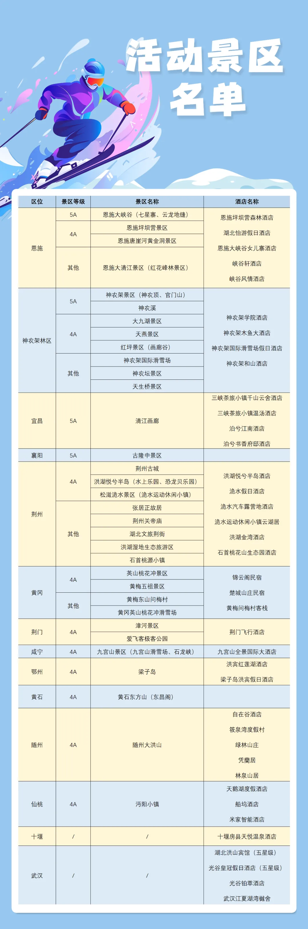 📍神农架国际生态旅游区 📍古隆中景区 📍恩施大峡谷 📍随州大洪山风景名胜区 ◢