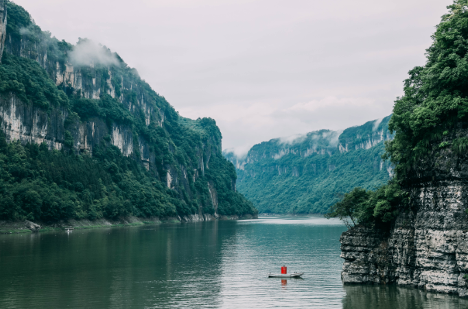 搭乘游船,在江面上前行,如同驶入了一幅流动的水墨画。