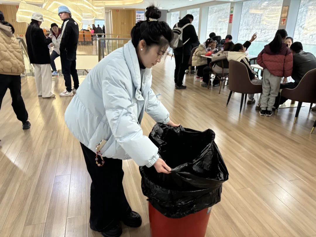 随着游客陆续入园,售票窗口前排起了长队。售票员们面带微笑,耐心地为每一位游客解答疑问、办理票务。尽管一上午都未曾休息片刻,嗓子也有些沙哑,但他们始终保持着专业的态度,熟练地操作着电脑,快速准确地为游客出票。每一次递出票的同时,还不忘送上一句温馨的祝福:“祝您在景区游玩愉快!” 景区入口处,检票人员迎接着一波又一波的游客。他们手中的检票设备快速地扫描着每一张门票,动作娴熟而流畅。 景区客服人员的工作不仅是解答咨询和处理突发状况,在维护景区环境方面同样积极主动。他们随时更换垃圾袋,清理游船上的垃圾,保持环境卫生,让游客一进入游客中心就能感受到整洁与舒适。 正月初六,恩施大清江景区的员工们用自己的坚守和付出,让每一位游客都感受到了家的温暖。他们或许只是平凡岗位上的普通一员,但正是他们的兢兢业业,才让景区在春节期间得以顺利运营,为游客们留下了美好的回忆。让我们向这些默默奉献的景区员工们致敬!