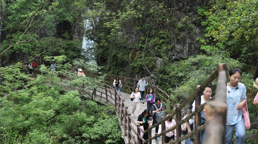 01 船进红花峰林,开启奇妙之旅 随着游船缓缓拉进与恩施大清江红花峰林景区的距离,一场关于自然与美景的探索之旅正式拉开序幕。窗外,清江如一条碧绿的绸带,蜿蜒在喀斯特地貌的群山之间,而红花峰林,就像一颗璀璨的明珠,静静地镶嵌在这片神奇的土地上。 02 领先国旅组织,百人共赏美景 此次旅行由领先国旅精心组织,一百多位游客怀揣着对美的向往,一同踏上了这段难忘的旅程。在景区工作人员的带领下,大家深入红花峰林,近距离感受大自然的鬼斧神工。 03 红花峰林,清江畔的绝美画卷 红花峰林,坐落于恩施市新塘乡与沙地乡之间的清江南岸,这里奇峰林立,怪石遍布,植被繁茂,四季野花竞相绽放。 湖北清江红花峡索道引进奥地利多贝玛亚技术,采用单线循环脱挂式八人吊厢,时速6米/秒,每小时运力2700多人。半透明吊厢安全观景,横跨清江连接两岸,游客可俯瞰河谷、仰望红花峰林,联动游船步道形成"水陆空"立体游览。该索道也是800里清江上唯一一条跨江索道。 04 百人同游,共享欢乐时光 刘先生表示,红花峰林景区是一个充满魅力的地方,有着独特的自然风光和丰富的旅游资源。在这里,他不仅被美景所震撼,更是在旅途中结识了志同道合的朋友。大家纷纷拍照留念,记录下这难忘的瞬间。景区与领先国旅的精心安排,让这次旅行充满了欢声笑语。 为增加游客体验感,目前红花峰林景区正在进行提档升级,升级完成后将增加飞拉达、星空露营基地等新项目,届时景区将会以崭新面貌迎接广大游客朋友。