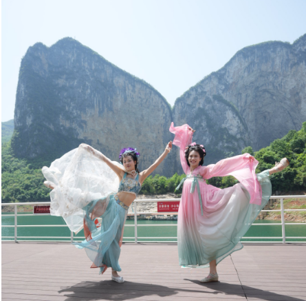 五一假期,恩施大清江景区宛如一幅徐徐展开的绝美古风画卷,而游船上举办的古装秀活动,更是为这幅画卷添上了浓墨重彩的一笔,吸引了众多游客前来共赴这场穿越千年的文化之约。 01 碧绿的江水在阳光照耀下波光闪烁,游船缓行,浪花飞溅,江风轻拂,惬意非常。游客们纷纷打卡起来,在这般如画美景中,一场古韵古装秀华丽启幕。 02 游船上,一群身着精美古装的演员仿若穿越而来。服饰色彩斑斓、款式繁多,皆为艺术精品。 演员们步伐轻盈,在船上翩翩起舞。舞姿优美,旋转、甩袖间韵味十足,时而惊鸿一现,时而游龙穿梭,尽显古舞之美。 03 此次活动不仅有精彩古装表演,还设有游客互动打卡环节。游客可穿景区准备的古装,与演员同框拍照。刹那间,游船仿若变身古代社交场,众人身着各式古装,摆出趣味造型,欢声笑语洒满江面。 一位穿汉服的小姑娘兴奋道:“感觉穿越到古代啦,太有趣!古装超美,我拍了好多,回去得向朋友炫耀。”年轻小伙儿身着侠客装,手持长剑,英姿飒爽,笑着称:“感觉棒极了,像闯荡江湖的大侠,在大清江留下了足迹。” 04 恩施大清江游船上的古装秀活动,为游客呈上视觉盛宴,尽显传统文化魅力。古装表演与互动打卡,让古代服饰与传统文化深入人心,助力文化传承推广。 五一期间,这场活动让大清江景区热闹非凡。游客赏美景的同时,沉醉于浓厚文化氛围。相信此类活动将吸引更多人前来,领略大清江美景与文化独特魅力。 山水有约,精彩无限 五一黄金周假期期间,我们推出了飞拉达悬崖挑战和水上狂欢项目,快来打卡吧!