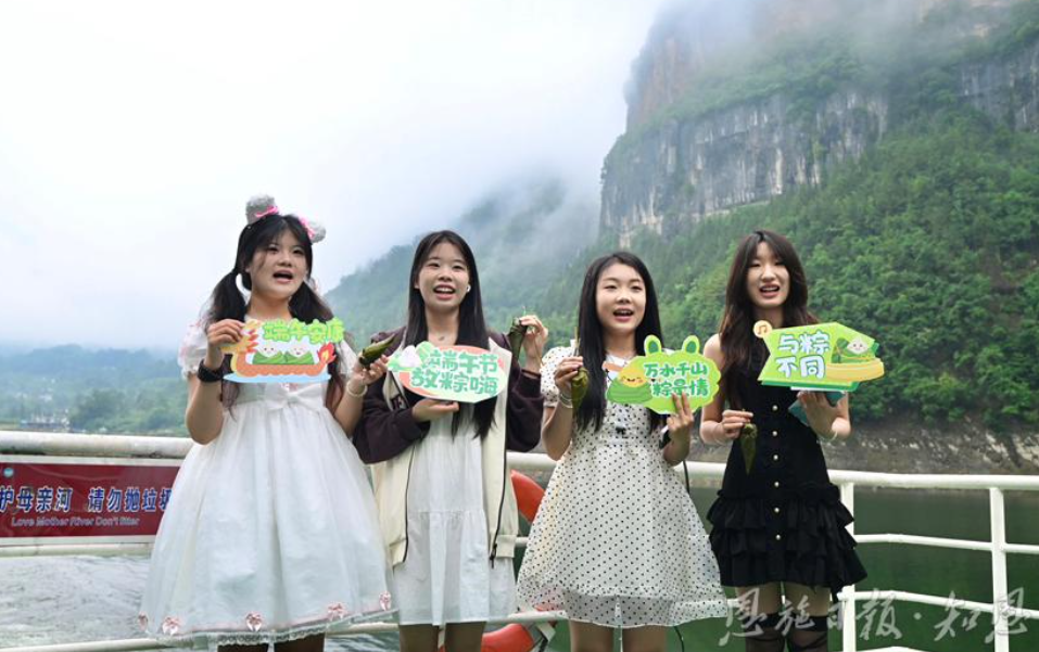 “还有几种口味呢,真贴心!”5月31日端午节当天,恩施大清江游轮上,游客一边吃着工作人员送上的粽子一边欣赏美景,沉浸在节日的氛围中。 当天,恩施大清江景区迎来众多游客。景区工作人员早早准备好粽子,将粽子与节日祝福送到游客手中。几位来自武汉的大学生兴奋地说:“虽然下雨了,但恩施大清江的风景非常诗意,还有节日惊喜,不虚此行!” 端午假期,恩施各景区纷纷推出体验式文化旅游活动和优惠措施,为游客打造满满过节仪式感。