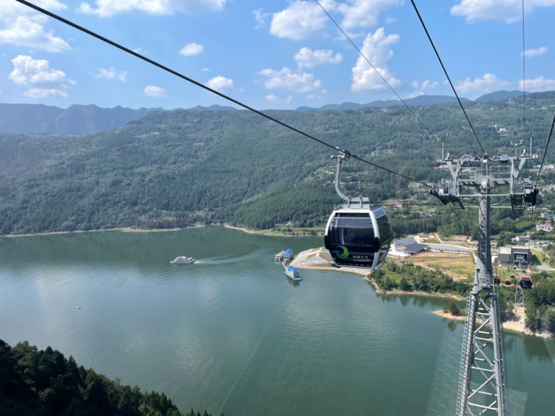 “跨江索道”作为清江河上最为靓丽的风景线,其全套设备从素有"索道王国"之称的奥地利多贝玛亚公司进口,采用国际先进的单线循环脱挂式八人吊厢,上下高差156米,运行速度最快6米/秒,设计运载量每小时2700人。乘坐其间可仰望俏丽的红岩嘴,眺望璀璨的红花石林,俯瞰壮丽的清江河谷,在安全、舒适、快捷中全方位、多角度品味时光里的清江河、读懂岁月中的大恩施。