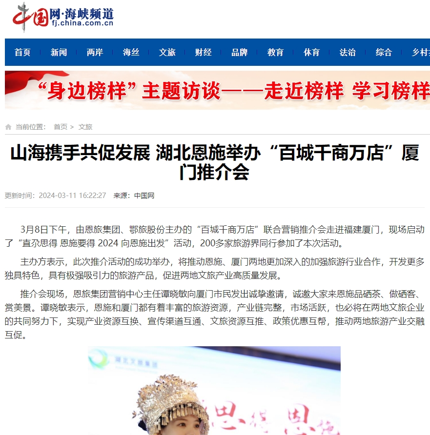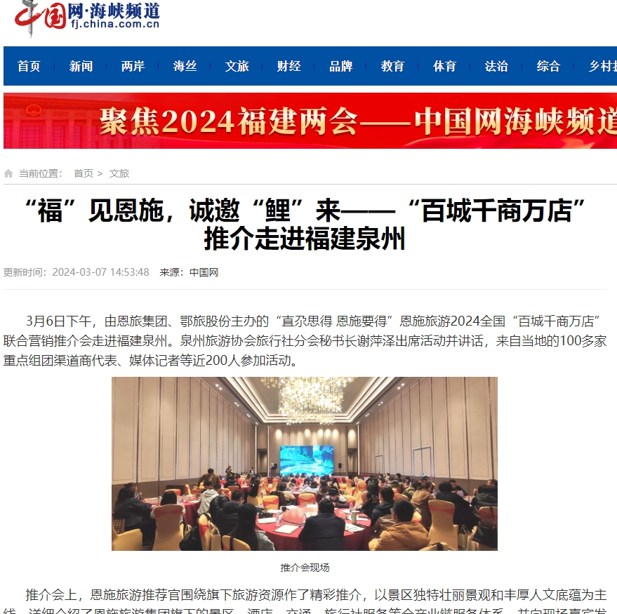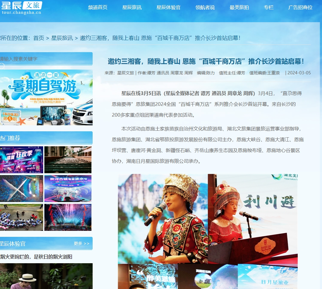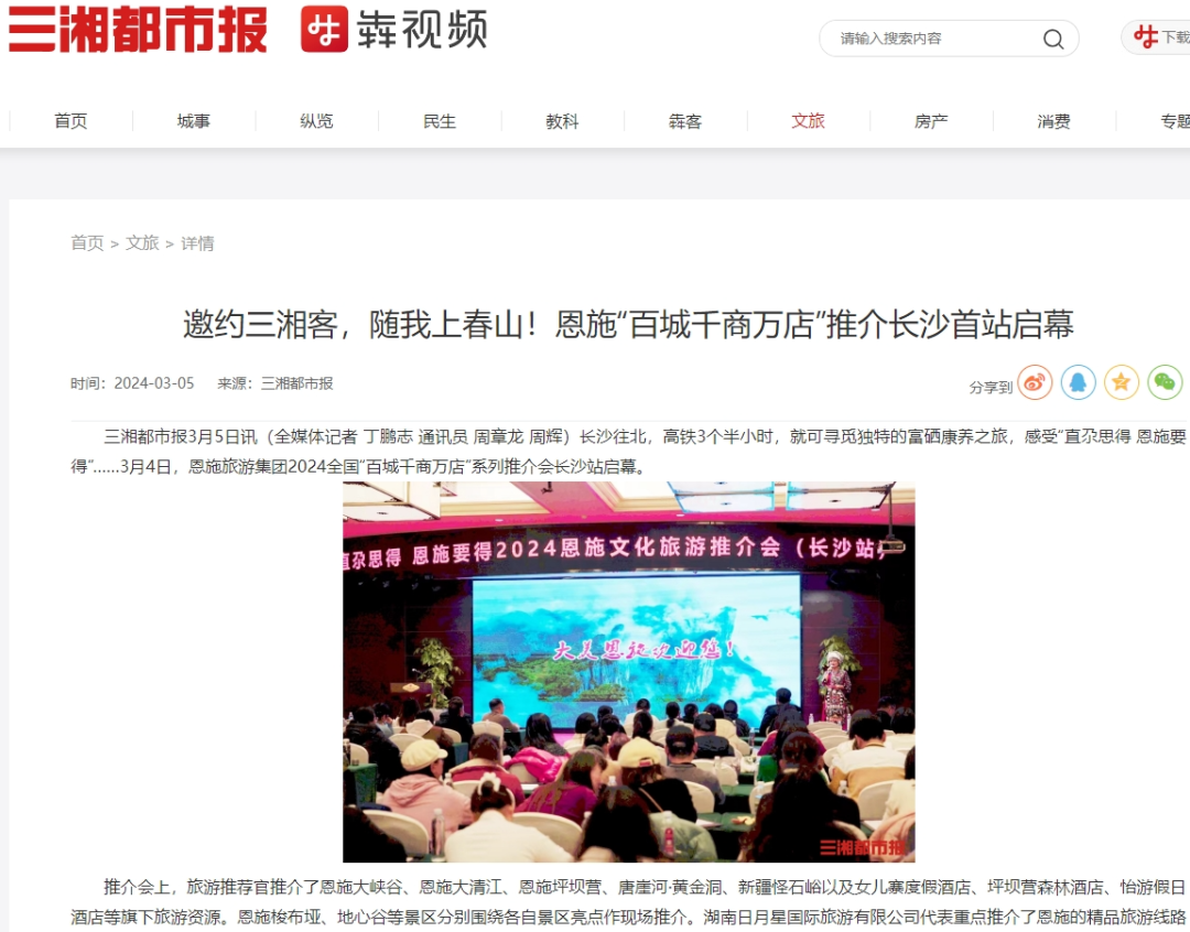 连日来,由恩施旅游集团、鄂旅股份主办的“直尕思得 恩施要得” 2024全国“百城千商万店”系列推介会,相继在长沙、益阳、广州、深圳、厦门、泉州、福州、珠海、济宁、温州、南宁、威海等多座城市成功举办。